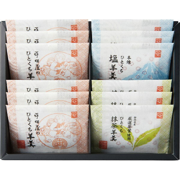 河内駿河屋 ようかん詰合せ(2棹)河内駿河屋 ようかん詰合せ(3棹)河内駿河屋 友禅庵 (UA-10)河内駿河屋 友禅庵 (UA-20)平田屋 一口羊羹 (18個) (R‐150)平田屋 一口羊羹(24個) (R‐200)平田屋 一口羊羹(36個) (R‐300)2018年 贈りもの・お返しものギフト【平田屋 一口羊羹 (12個) (R‐100)】広告文責(有)イースクエアTEL:0120-532-772■商品名称:平田屋 一口羊羹 (12個)■メーカー品番:R‐100■商品内容:一口羊羹(本煉り)各26g×6個(塩・抹茶)各26g×各3個■包装種別:化粧箱入■箱サイズ(約):幅16.2cm×奥行20.6cm×高さ3.7cm■箱重量(約):390g■のしサイズ:A5■宅配便区分:常温※お客さま都合による、ご注文後の[キャンセル][変更][返品][交換]はお受けできませんのでご注意下さいませ。