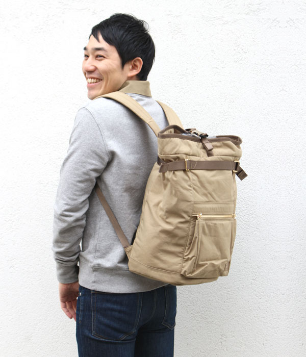 カラー 10ブラック 40ベージュ 50ネイビー 素材 表:ペーパーナイロンクロス (耐久性超撥水加工) (ポリエステル綿ボンディング加工) 裏:スパンナイロンタフタ(耐久性超撥水加工) 生産国 日本 サイズ 約W30cm×H46cm×D20cm ストラップ長さ:約43〜93cm 重さ 約700g/20Litre 備考 本体:バックル開閉 内部:ベルクロポケット×2 前部:ファスナーポケット×1 吉田カバン PORTER DRAFT バックパック 和紙糸とナイロン糸が魅せる独特の表情 PORTER独自の新素材“和紙×ナイロン” - ポーター ドラフト - 日本古来の素材である和紙から生まれた糸とナイロン糸で織り上げたオリジナル生地を使った、MADE IN JAPANを強く打ち出したトータルカジュアルシリーズです。